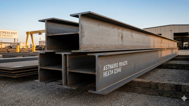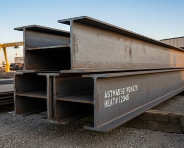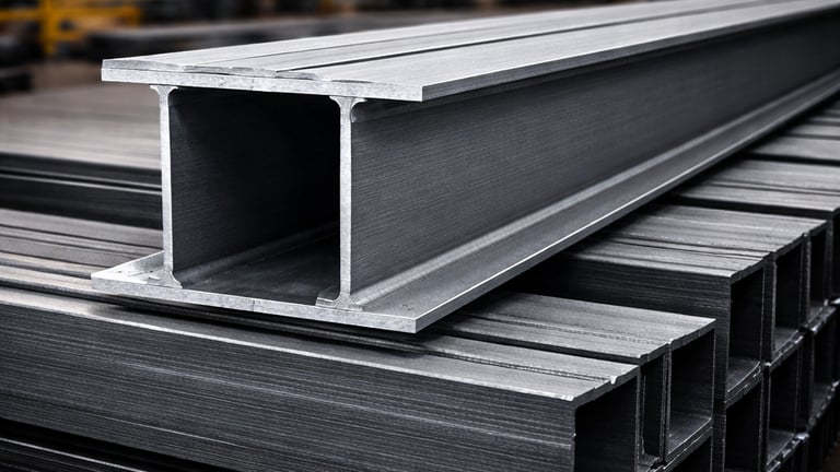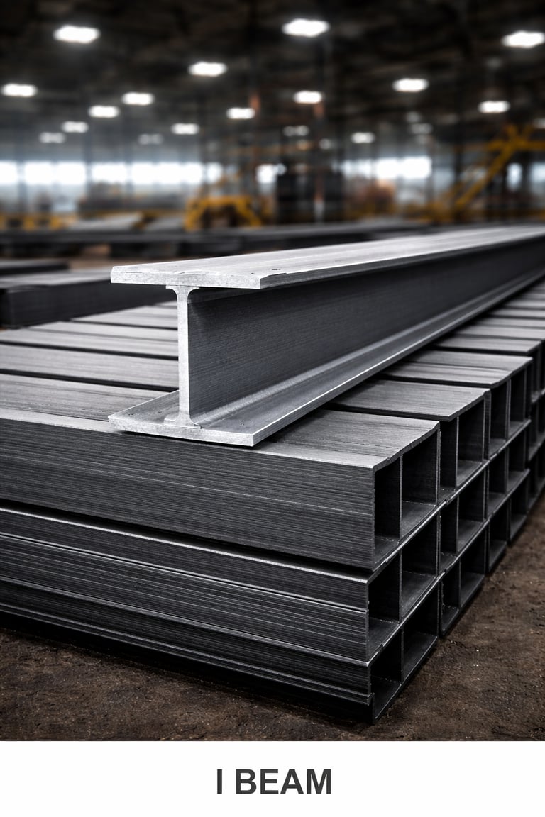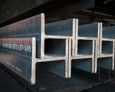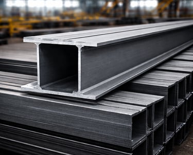 A standard structural beam with consistent dimensions, widely used in construction for strength, versatility, and ease of fabrication.