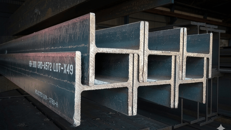 Similar to I beam but with wider flanges and thicker web, forming an “H” shape. Provides better load distribution and structural stability.